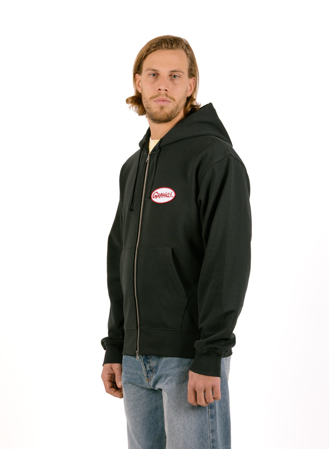 Oval Patch Zip Hooded Sweatshirt Vintage Black